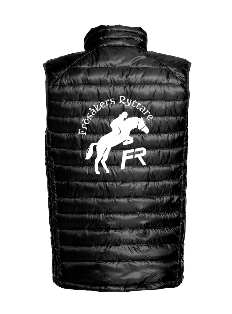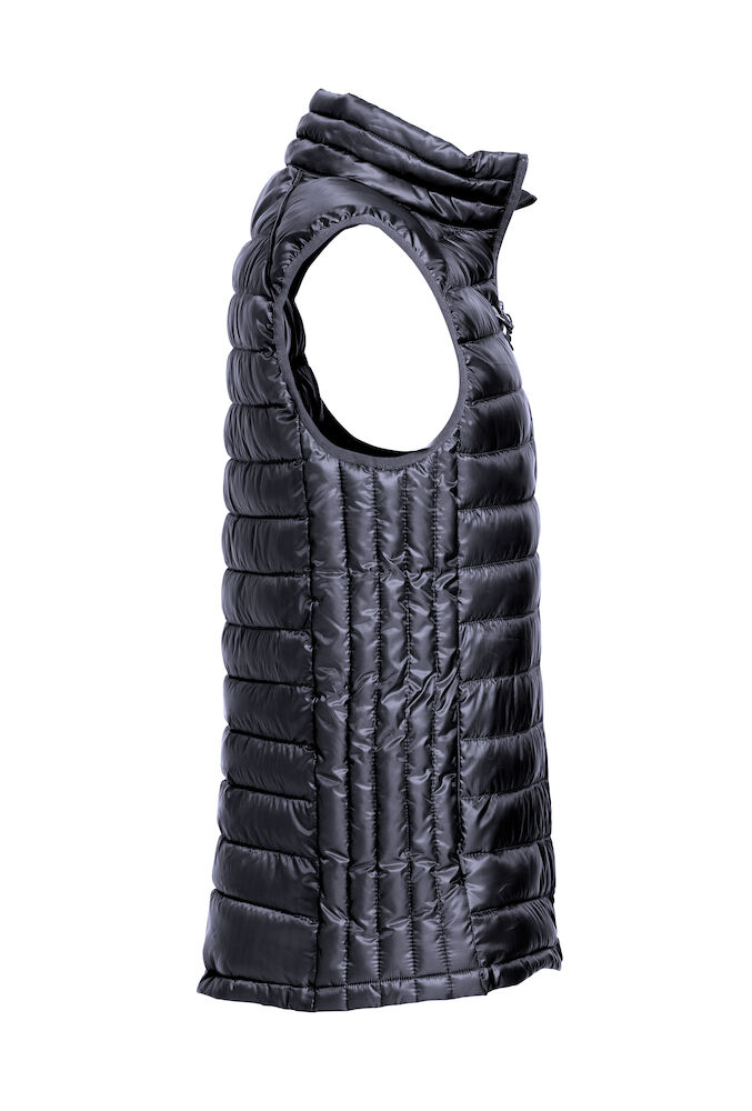 Modern lättvadderad väst. Tre fickor med dragkedjor samt två innerfickor.