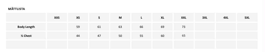 Storlekstabell: se sista bilden