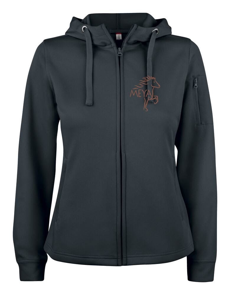 En spun dyed hoodtröja med hel dragkedja. Ton-i-ton dragkedja framtill, på de två frontfickorna samt på ärmficka. Flata snören i huvan, fiskbensmönstrat nackband i halsen, ribbad mudd i ärmavslut och nedtill. Utrustad med smart lösning för hörlurar.