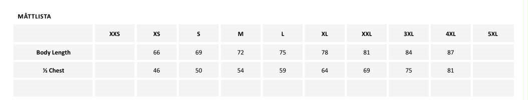Storlekar: XS, S, M, L, XL, 2XL, 3XL, 4XL