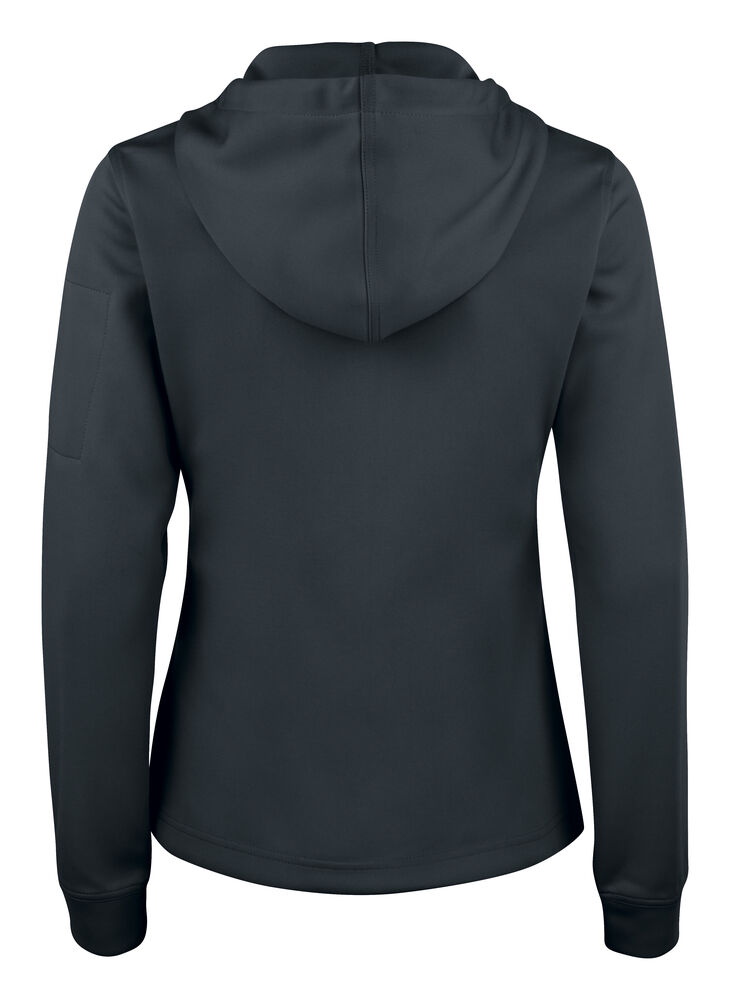 En spun dyed hoodtröja med hel dragkedja. Ton-i-ton dragkedja framtill, på de två frontfickorna samt på ärmficka. Flata snören i huvan, fiskbensmönstrat nackband i halsen, ribbad mudd i ärmavslut och nedtill. Utrustad med smart lösning för hörlurar.