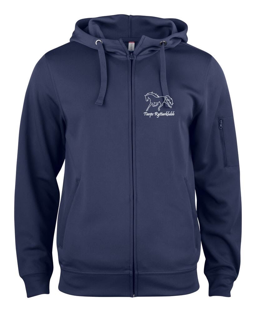 En spun dyed hoodtröja med hel dragkedja. Ton-i-ton dragkedja framtill, på de två frontfickorna samt på ärmficka. Flata snören i huvan, fiskbensmönstrat nackband i halsen, ribbad mudd i ärmavslut och nedtill. Utrustad med smart lösning för hörlurar.