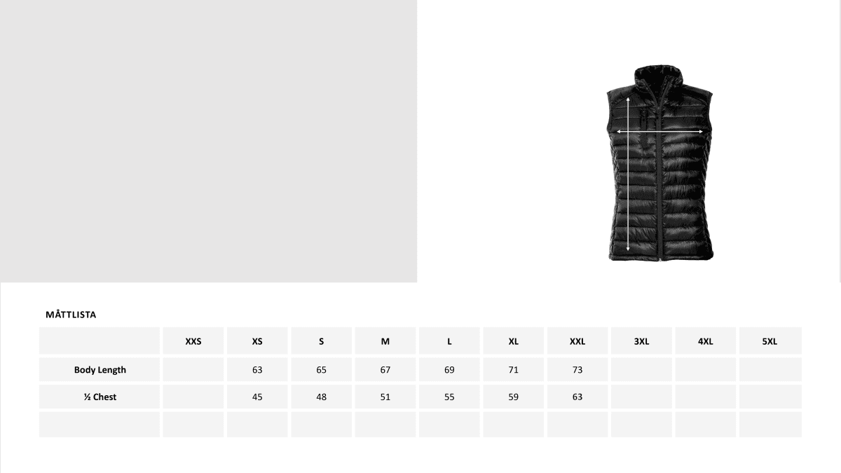 Modern lättvadderad väst. Tre fickor med dragkedjor samt två innerfickor.