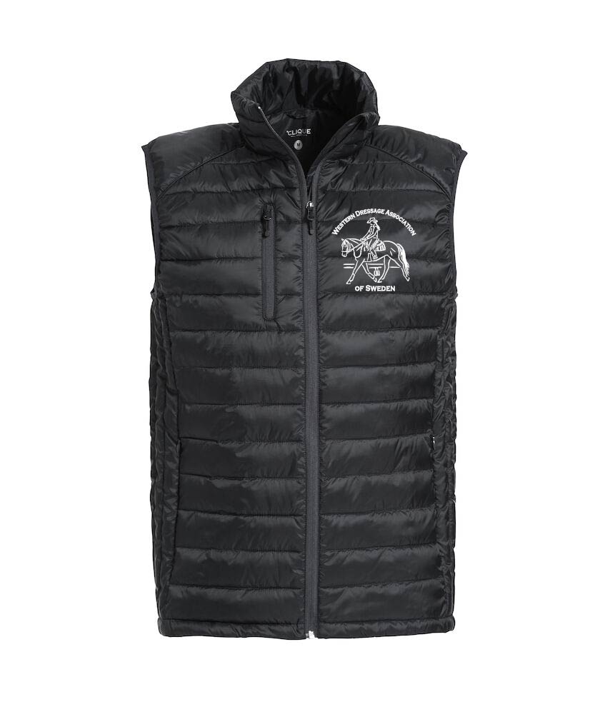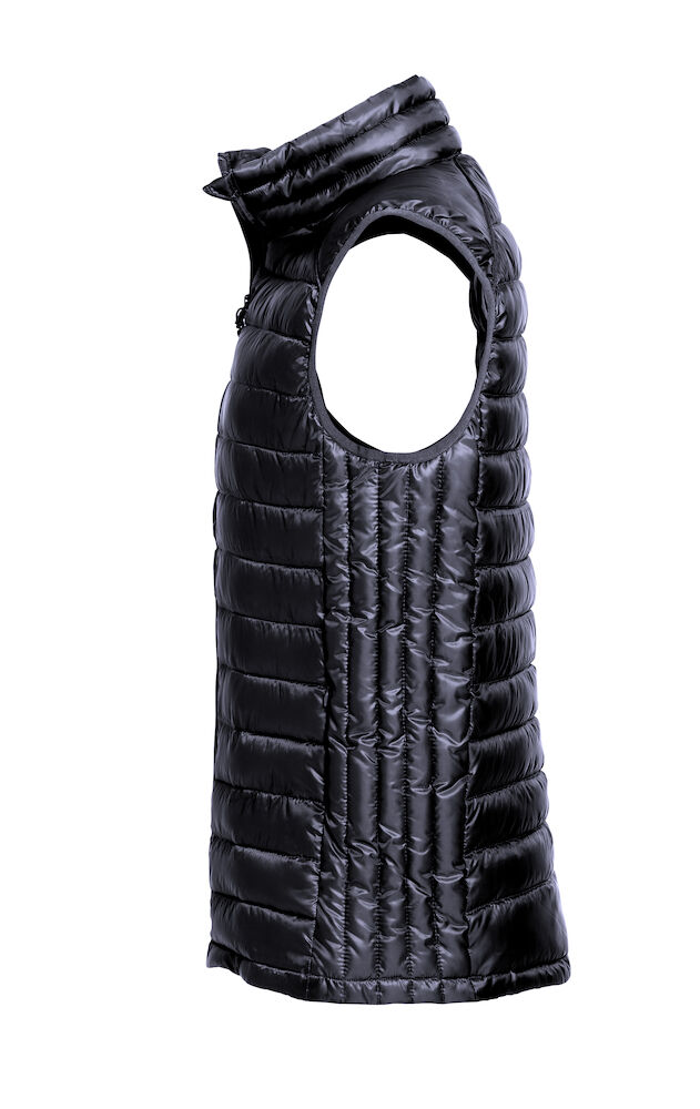 Modern lättvadderad väst. Tre fickor med dragkedjor samt två innerfickor.